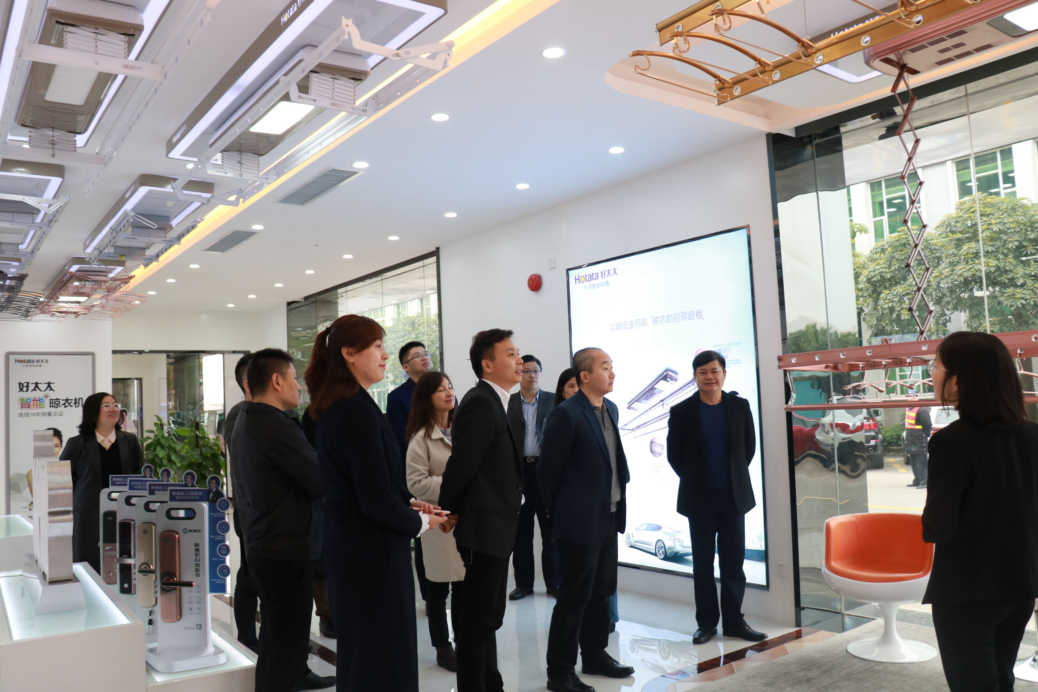 會(huì)議結(jié)束后,調(diào)研組參觀了廣東好太太集團(tuán)品牌展示中心,參觀過程中,由廣東好太太集團(tuán)董事長沈漢標(biāo)圍繞公司的核心技術(shù)產(chǎn)品作現(xiàn)場介紹講解。隨著物聯(lián)網(wǎng)、云計(jì)算產(chǎn)業(yè)的蓬勃發(fā)展,以智能鎖、智能晾衣機(jī)為代表品類的智能家居已成為物聯(lián)網(wǎng)領(lǐng)域備受矚目的應(yīng)用。廣東好太太集團(tuán)正著力打造智慧家庭生態(tài)圈,以智能鎖、智能晾衣機(jī)為拳頭產(chǎn)品,打造智能安防、智能晾曬、智能清潔、智能交互四大板塊,實(shí)現(xiàn)家居生活場景全覆蓋。
