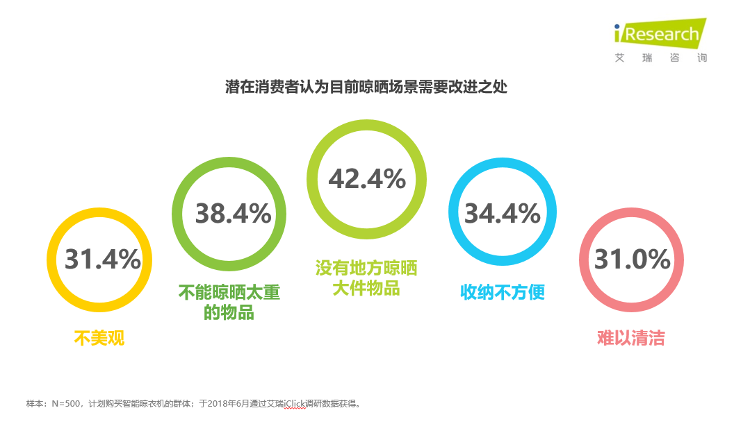 沒有地方晾曬大件物品是傳統(tǒng)晾曬場景的最大痛點,其次不能晾曬太大物品和收納不方便也受到詬病。大部分城市居民房屋面積有限,傳統(tǒng)晾曬工具功能單一,不能實現(xiàn)各種晾曬場景的變通,為智能晾衣機提供了市場機會。