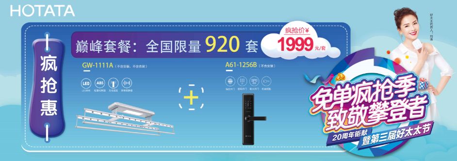 *瘋搶惠:“好太太晾衣機(jī)GW-1111A(不含安裝,不含衣架) + 科徠尼智能鎖A61-1256B(不含安裝)”巔峰套餐,特價僅需1999元/套。