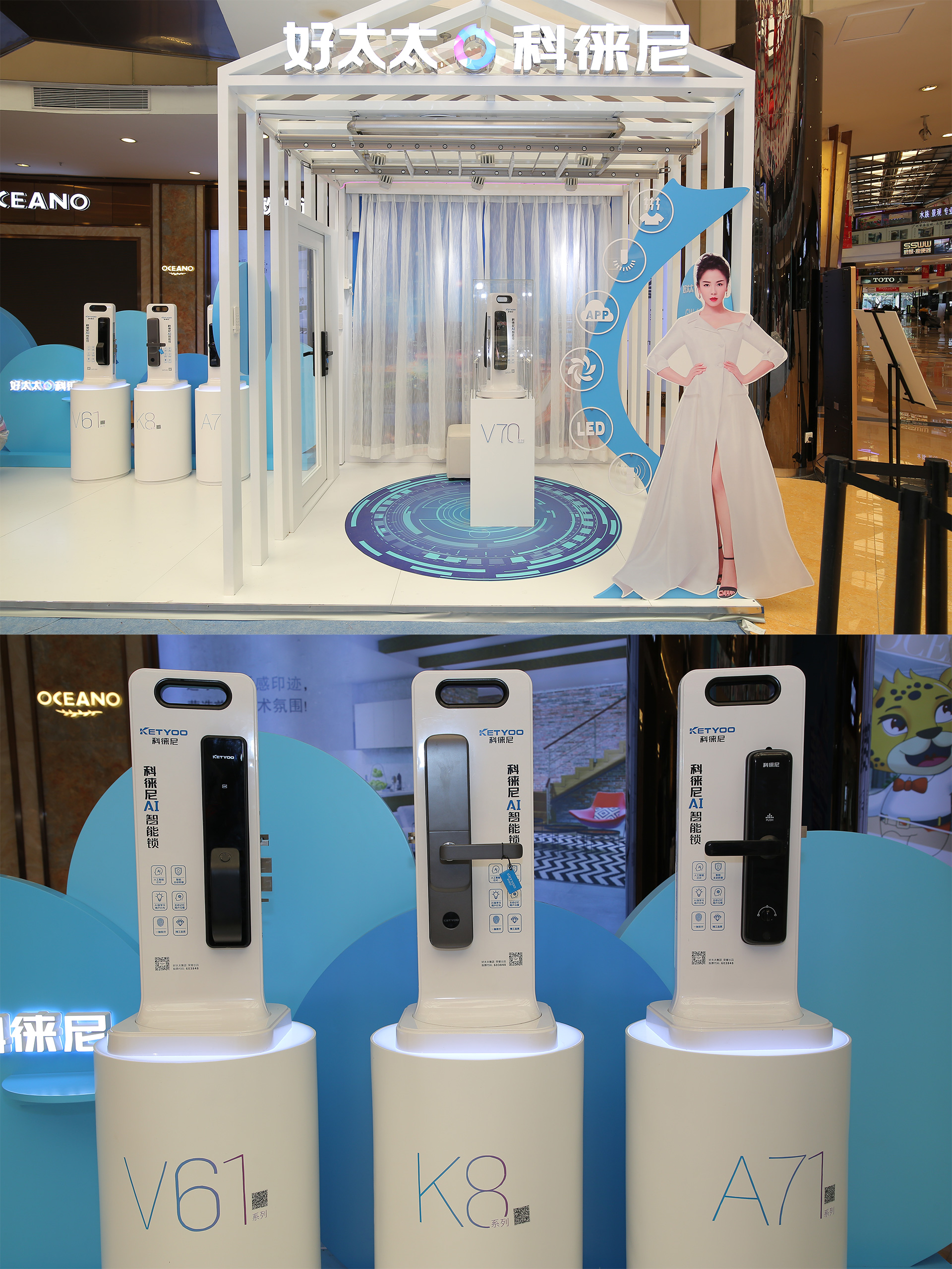 好太太的潮酷智能體驗(yàn)店,藍(lán)白簡約配色,極具未來感,智能晾衣機(jī)、智能鎖、智能交互通通可進(jìn)行體驗(yàn),專人進(jìn)行講解,科技感滿滿。