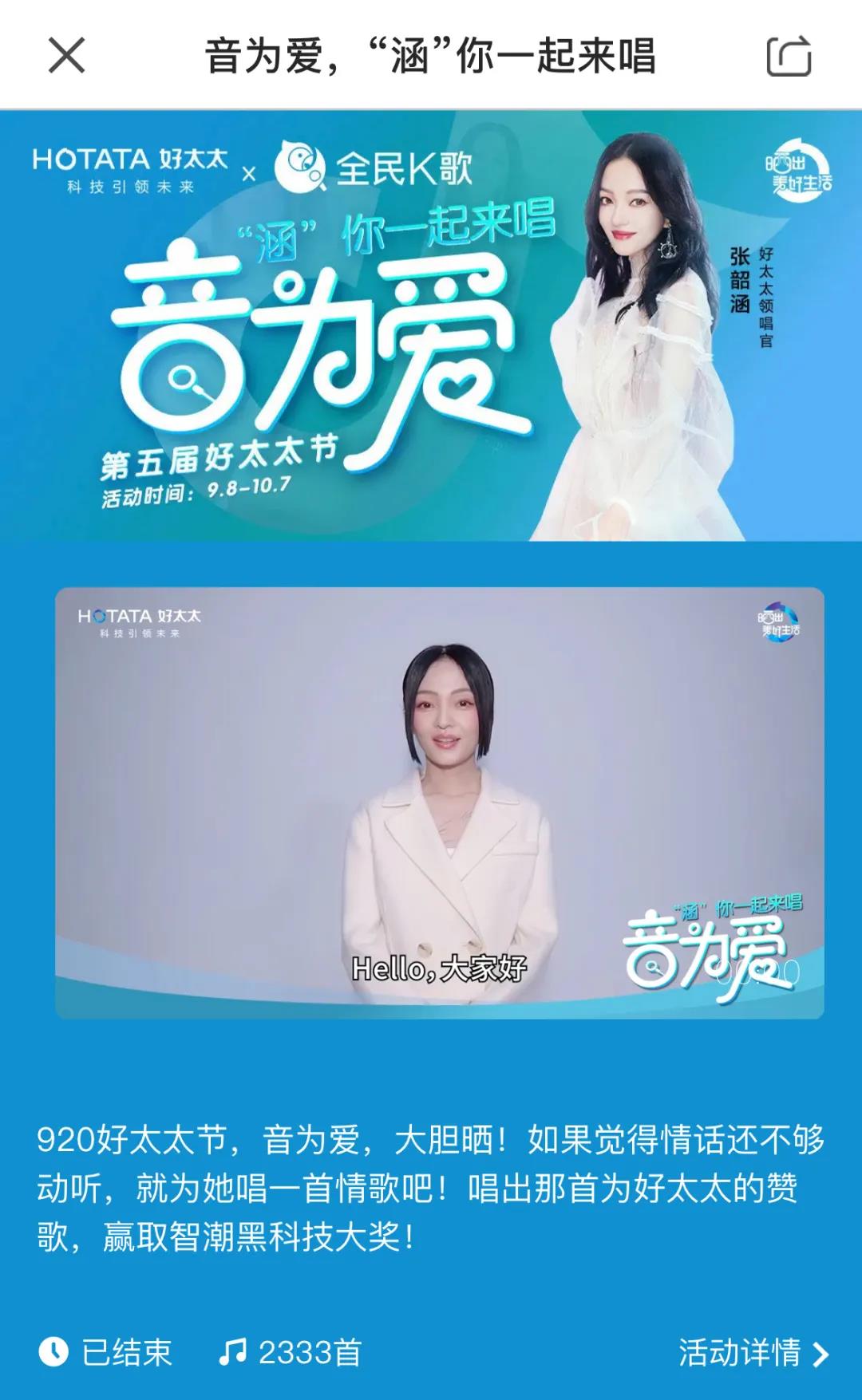 以張韶涵作為好太太領(lǐng)唱官,通過(guò)全民K歌平臺(tái)將歌聲傳遞給她