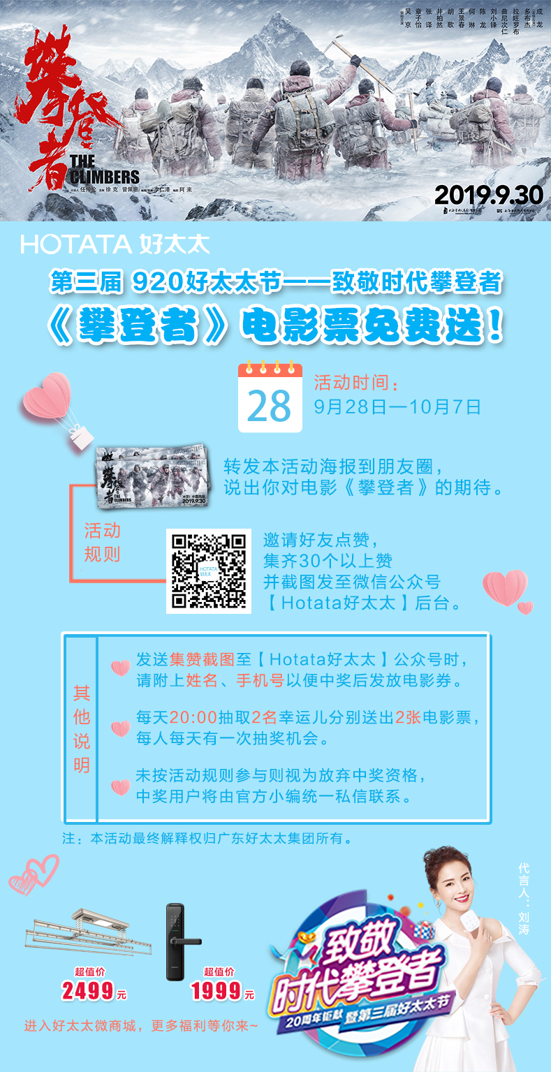 微信關(guān)注官方公眾號(hào)【Hotatamk体育-MKsports官网】,回復(fù)“電影票”,即獲得電影《攀登者》送票攻略。