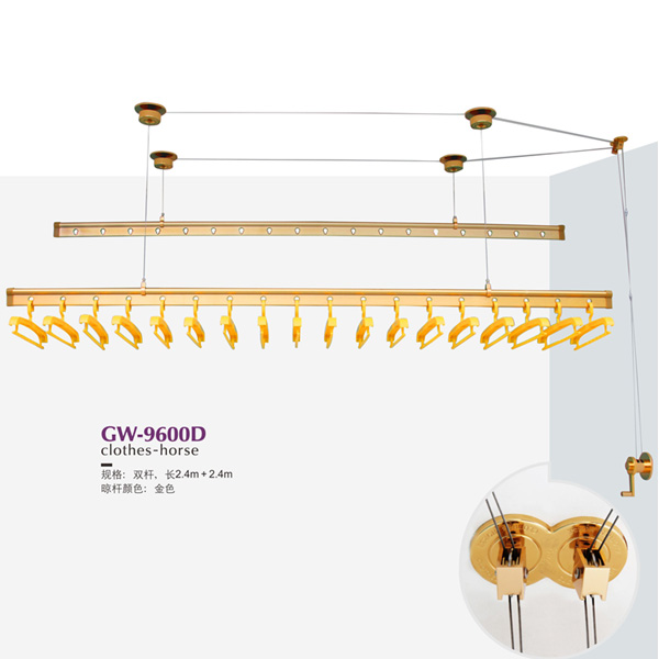 該系列產(chǎn)品標配為手搖系列雙桿衣架,桿長2.4米,每根桿孔18個,其中9600A和9600B屬同配置不同色,可根據(jù)顧客需求選擇配新款最豪華寬肩鋁合金衣架15或18個。9600C和9600D屬同配置不同色,配新款豪華寬肩防風(fēng)塑料衣架18個,充分照顧到顧客對衣架的不同習(xí)慣和需求。