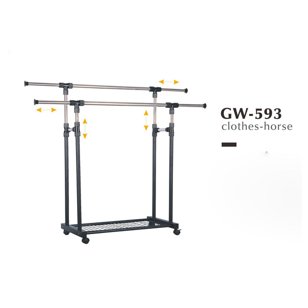 這款產(chǎn)品相對(duì)于老款的GW593而言,功能上亦有所突破。除了完全保留老款產(chǎn)品的功能以外,還在兩端額外增加了兩個(gè)可折疊的曬晾架。大家可別忽視了這個(gè)小小曬晾架的作用哦,因?yàn)樗且远喙芙M合的方式形成的,當(dāng)它展開(kāi)時(shí),以每個(gè)單桿曬晾2雙襪子或一張毛巾計(jì)算,這兩個(gè)小小的曬晾架就可以晾曬16雙左右的襪子或8張條毛巾左右哦,同時(shí)也可以放置一些重量相當(dāng)?shù)男蔽锲贰V匾氖钱?dāng)你不使用時(shí)還可以完全收起,完全不會(huì)增加使用空間。