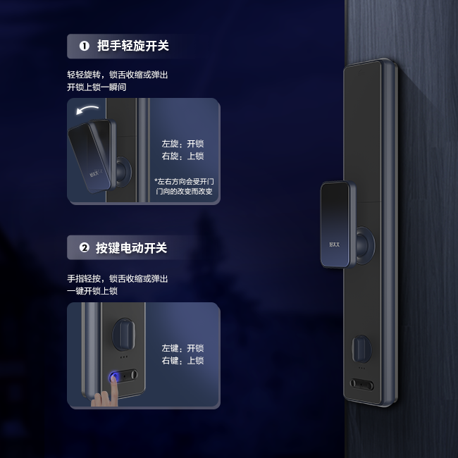 反鎖后,室外無法開鎖,只有室內(nèi)解除反鎖才能打開,女生獨處更安心